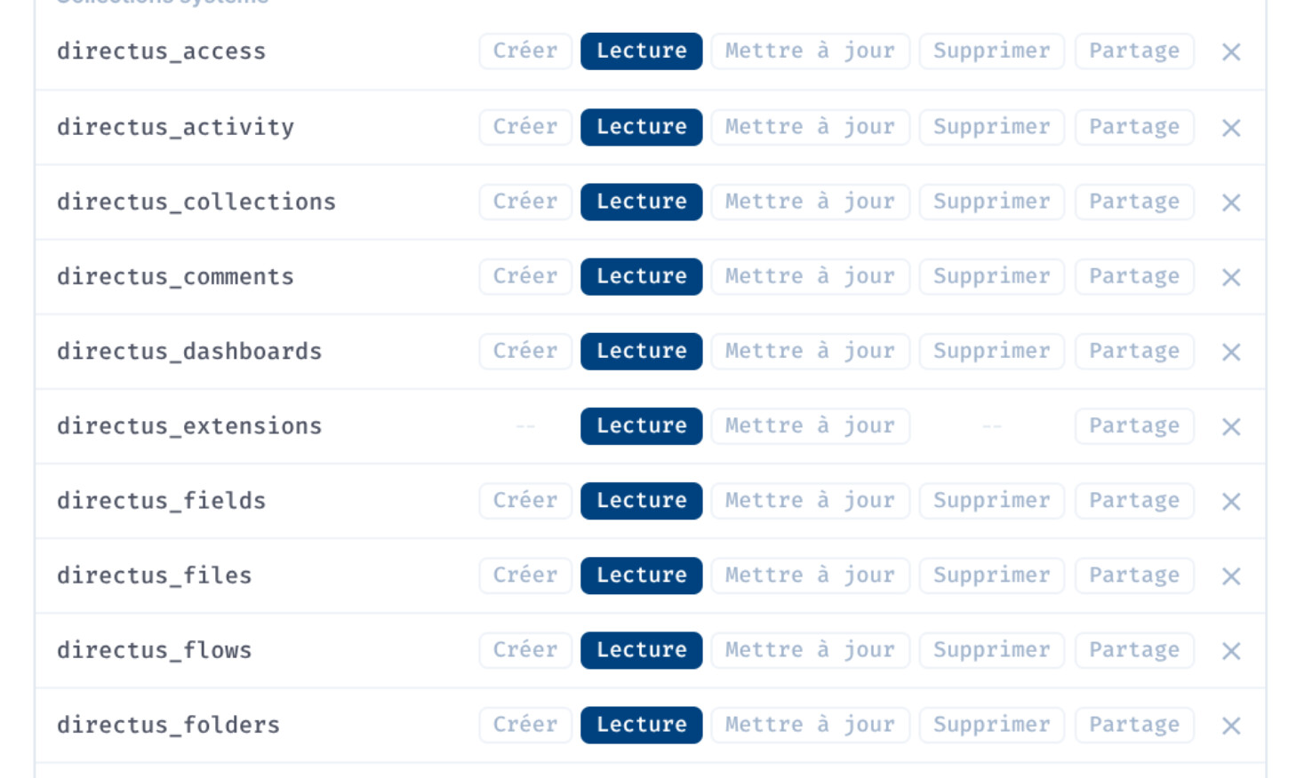 Les collections importantes sont a mon sens, les collections utilisateur, directus_collections, directus_fields et directus_relations.